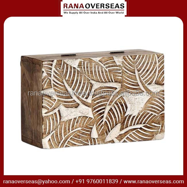 Hot Sale Personalized White Wash Leaf Design Wooden Jewelry Storage Box Reasonable Price Wood Crafts Wooden Boxes Wall Signs