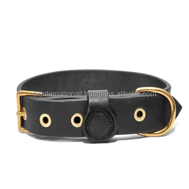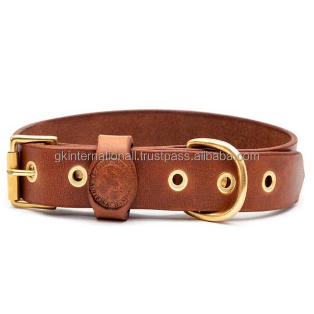 Hot Sale Pet accessories handcrafted genuine Tan Brown and Black leather dog collar with heavy duty brass fittings