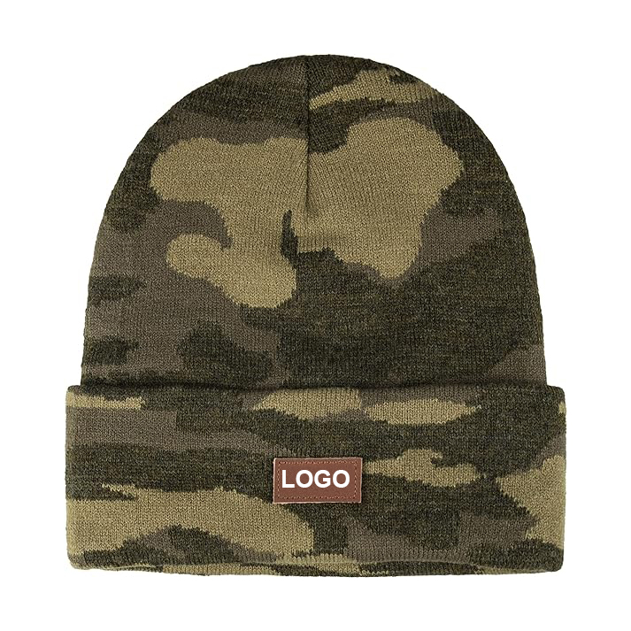 Hot Sale Plain Outdoor Beanie Caps for Men Women Green Camo Design Beanies Skull Caps Cuffed Winter Hat Beanie With Custom Logo