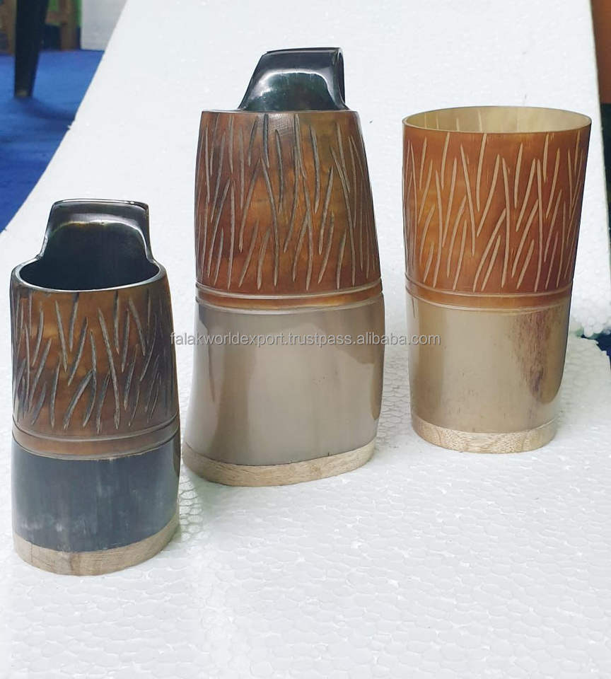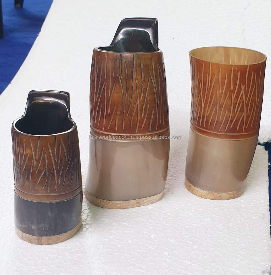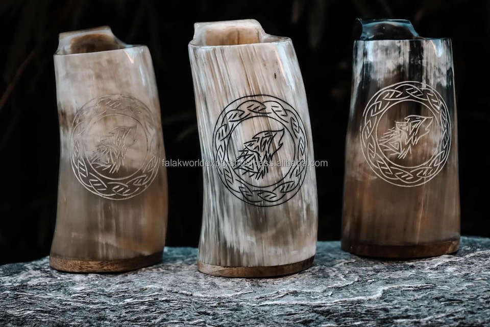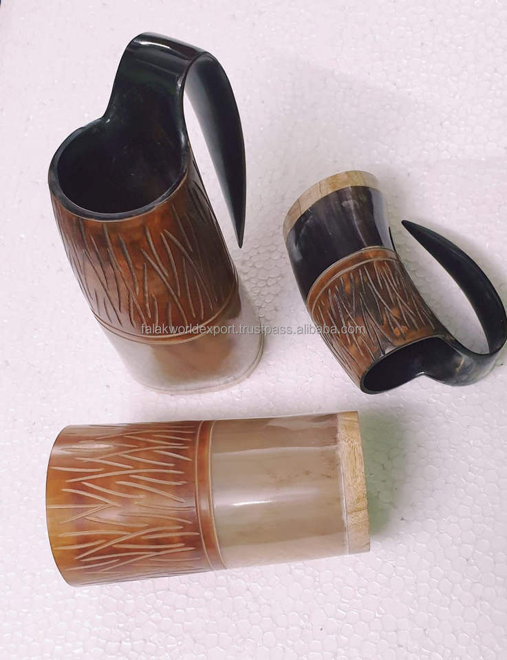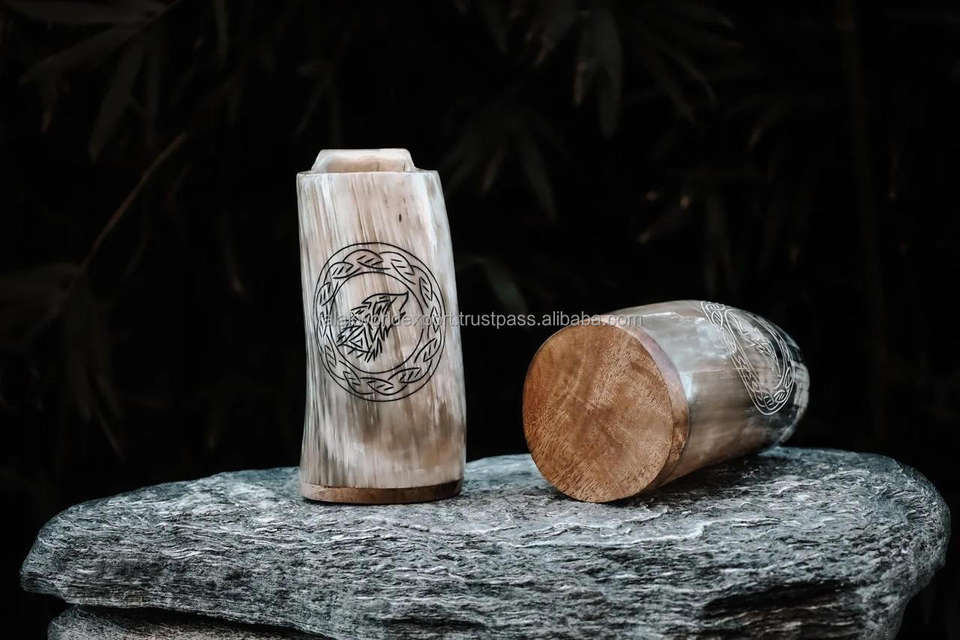 Hot Sale Polished Natural Buffalo Horn Mug Food Safe Genuine Horn Drinking Viking Cup for Wedding Decorative Religious Style FWE