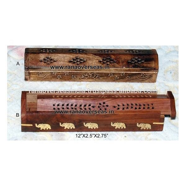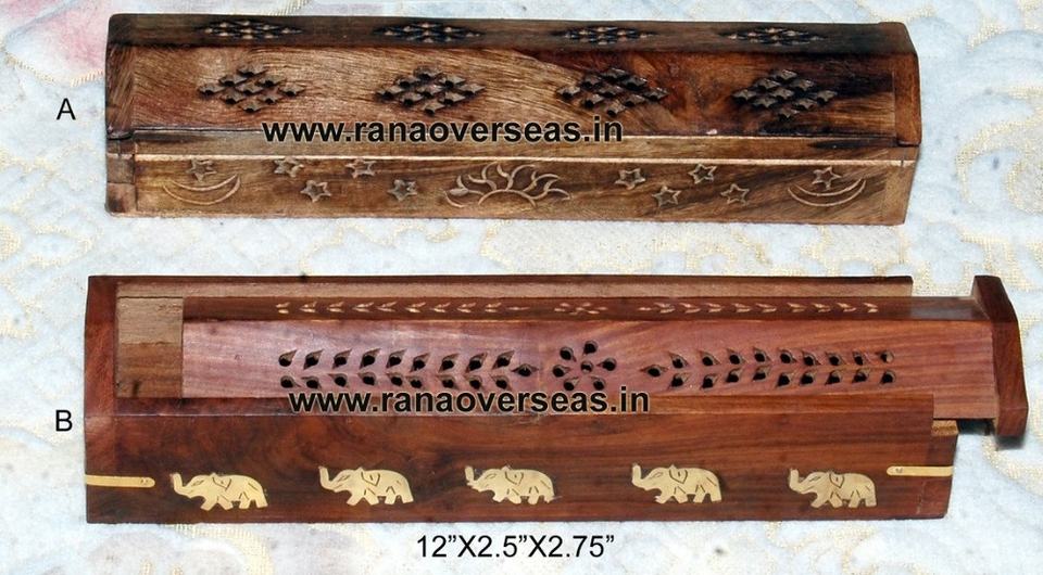 Product name:Carved and Elephant Inlaid Wooden Coffin Incense Burner Box