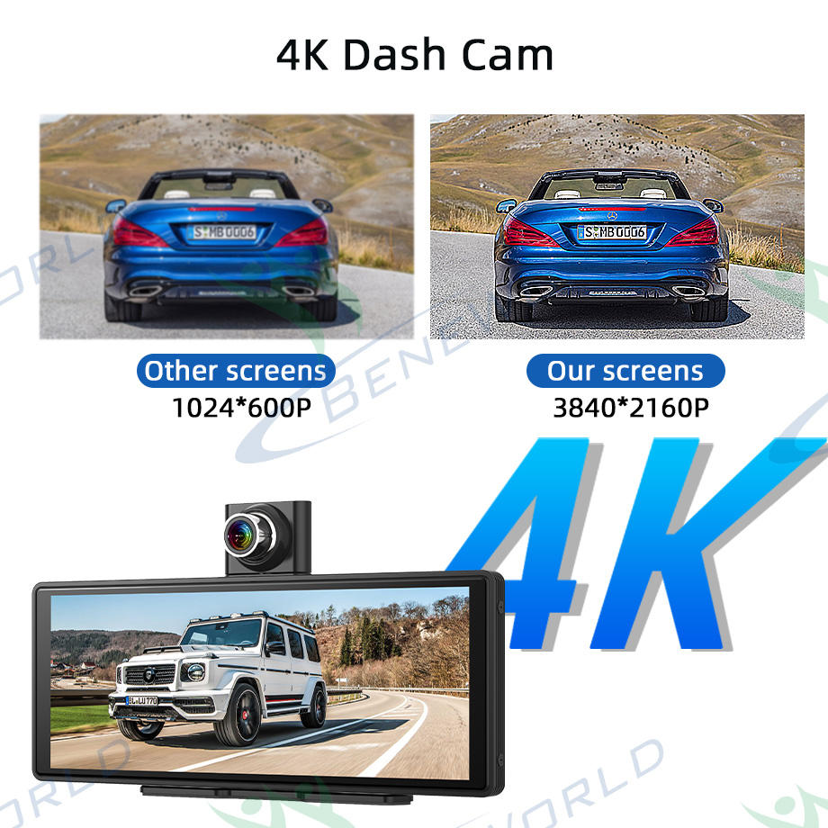 Hot Sale Portable Carplay Android Auto Touch Screen Front 4K Rear 1080P Loop Recording App Control