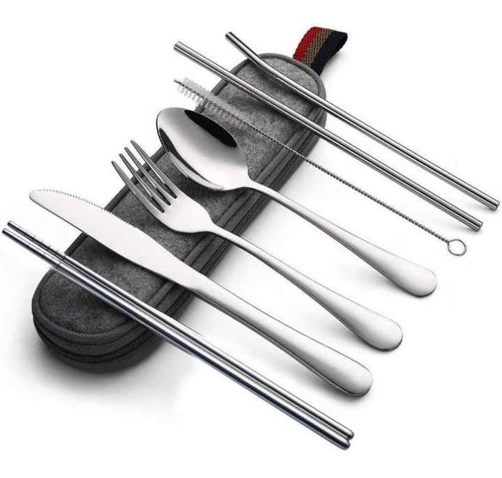Hot Sale Portable Stainless Steel Cutlery Set Classic Design Spoon Fork Straw Dinnerware Metal Material Stocked Feature