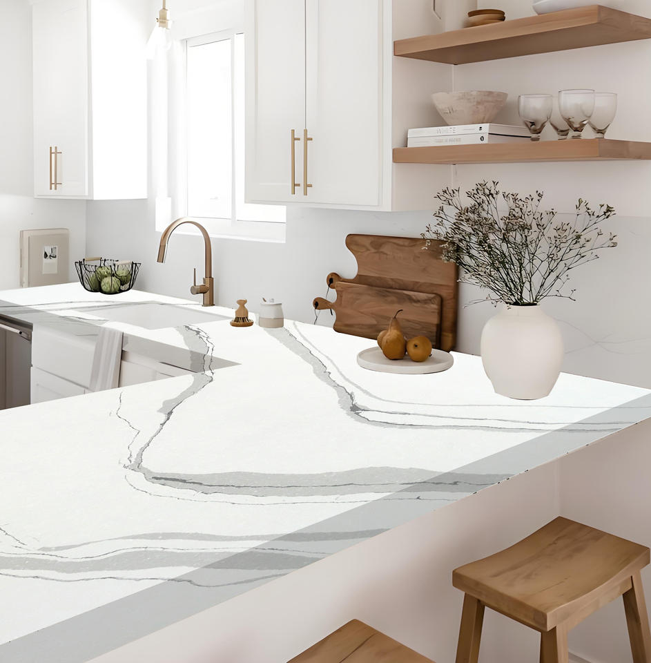 Hot Sale Premium Grey Vein Calacatta White Engineered Quartz Stone Fireproof Waterproof Custom Cut Modern Countertop Wall
