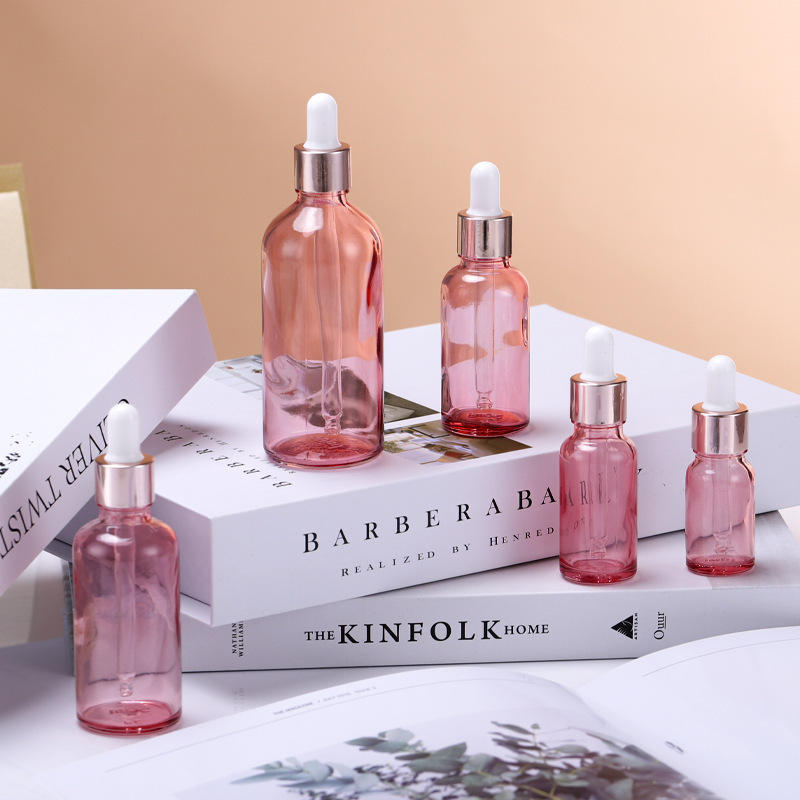 Hot Sale Premium Pink 10ml 5ml 20ml 30ml 50ml 100ml Round Shoulder White Dropper Glass Skin Care Cosmetic Oil Dropper Bottle