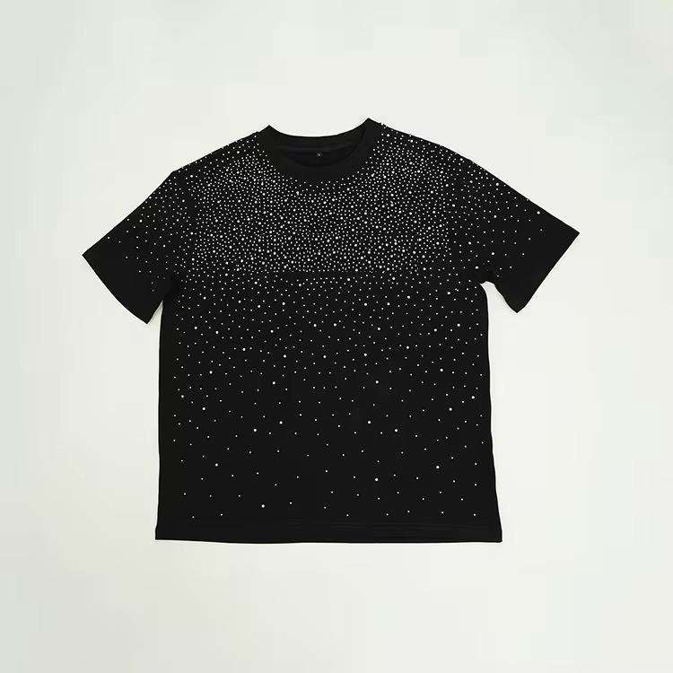 Hot Sale Premium Quality Crew neck Rhinestone T -Shirt With Multicolor RhineStone Embellished For Men Custom Rhinestones T-Shirt