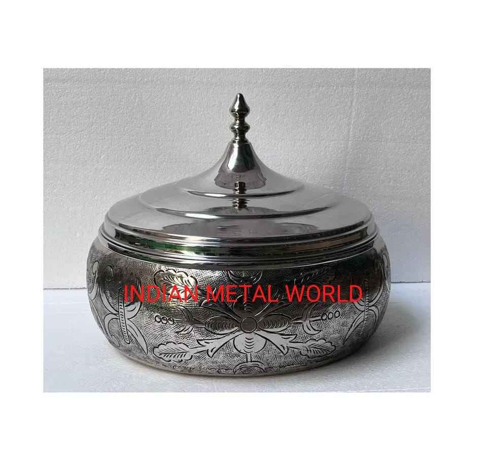 Hot Sale Premium Quality Round Shape Different Sizes Metal Serving Dish With Designer Brass Lid in India