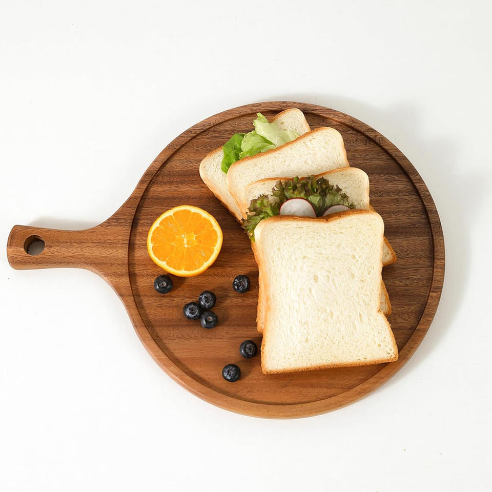Hot Sale Premium Quality Walnut Wood Cutting Dishes & Plates Wooden Pizza Serving Platter Board with Paddle Handle Cheese Board