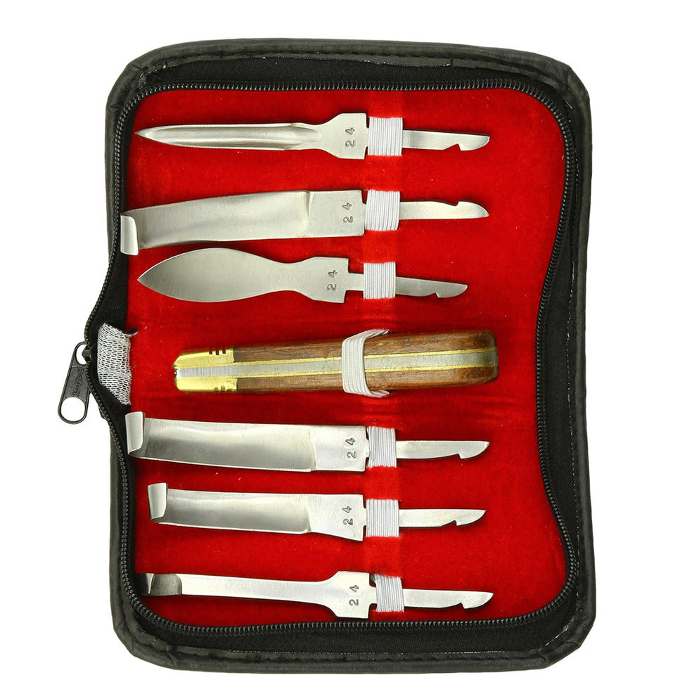 Hot Sale Professional Farrier Tool Changeable 6 Piece Hoof Knife Set Wood Handle Leather Pouch Premium Quality Equine Bovine