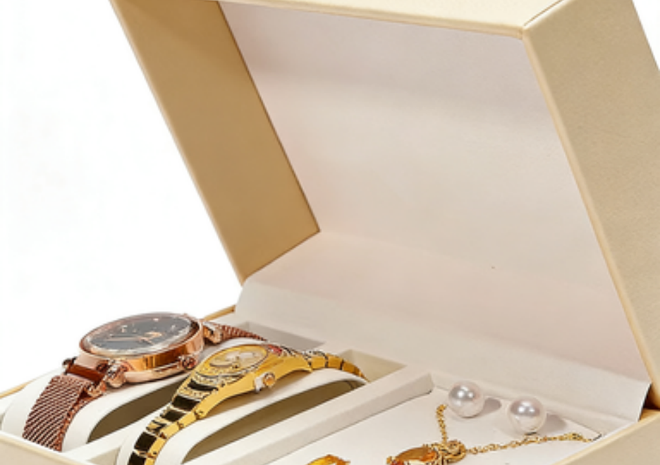 Hot Sale Protective Rectangle Watch Box Necklace Ring Jewelry Set Flip PU Leather Watch Gift Box for Packaging