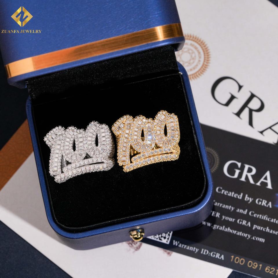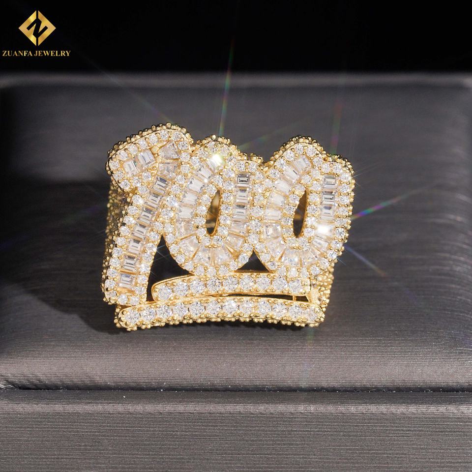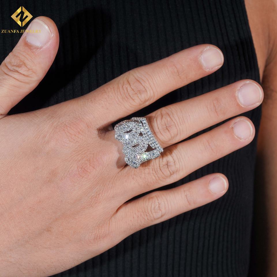 Hot Sale RTS Men Diamond Ring Moissanite 100 Point Hip Hop Ring Iced Out Moissnaite Silver