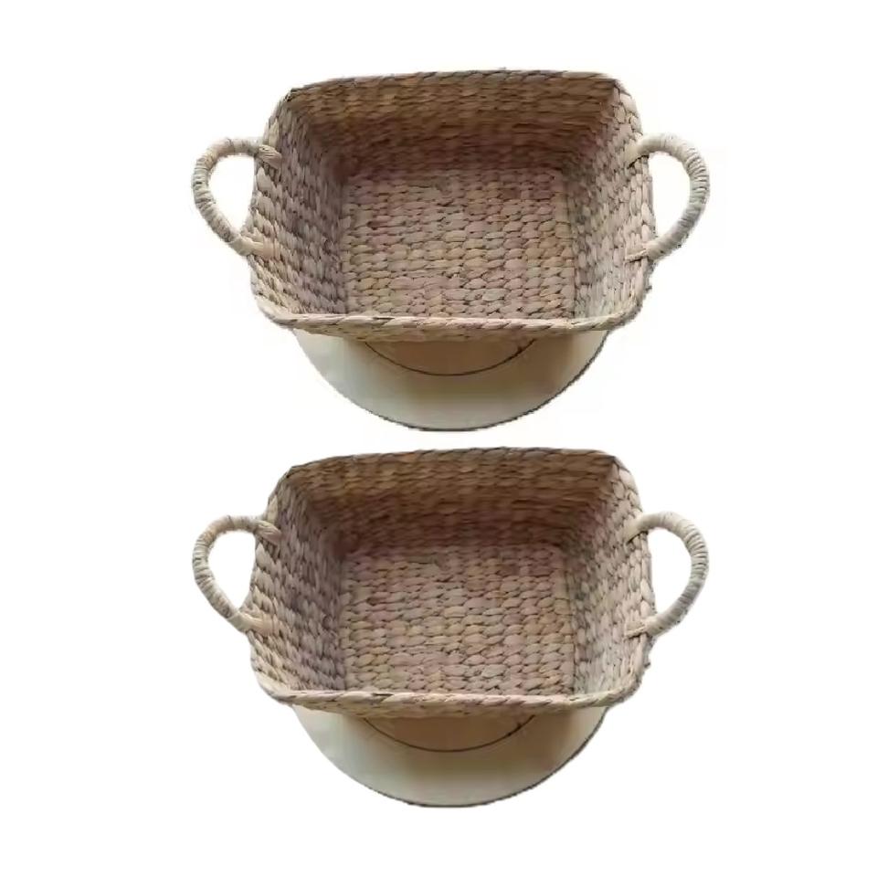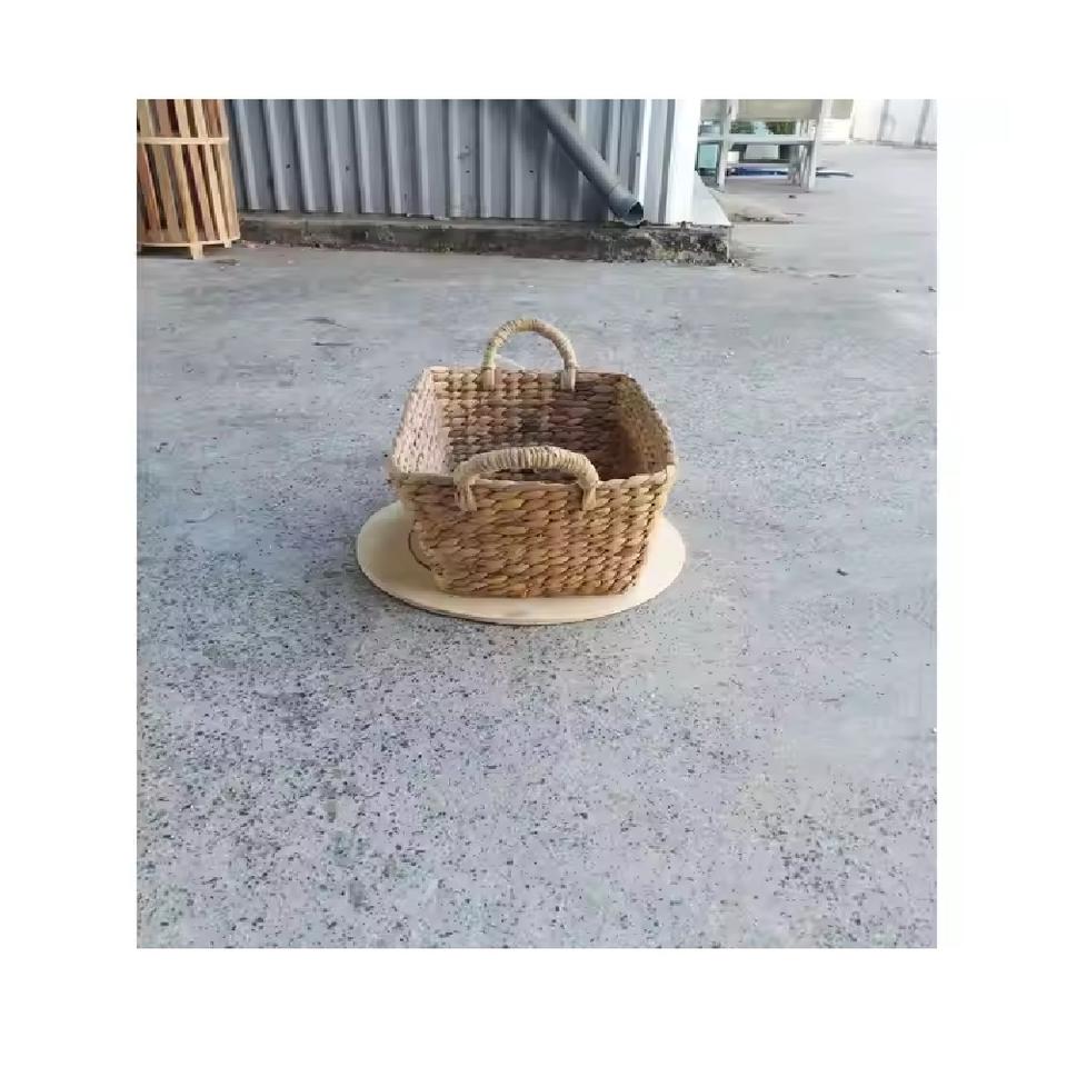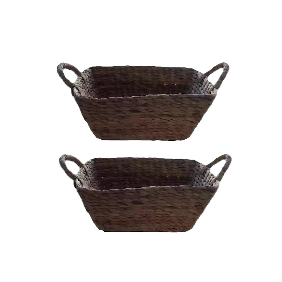 Hot Sale Eco-friendly Handcrafted Water Hyacinth Rectangular Storage Bins Multi-Size Storage Baskets with Twisted Handle