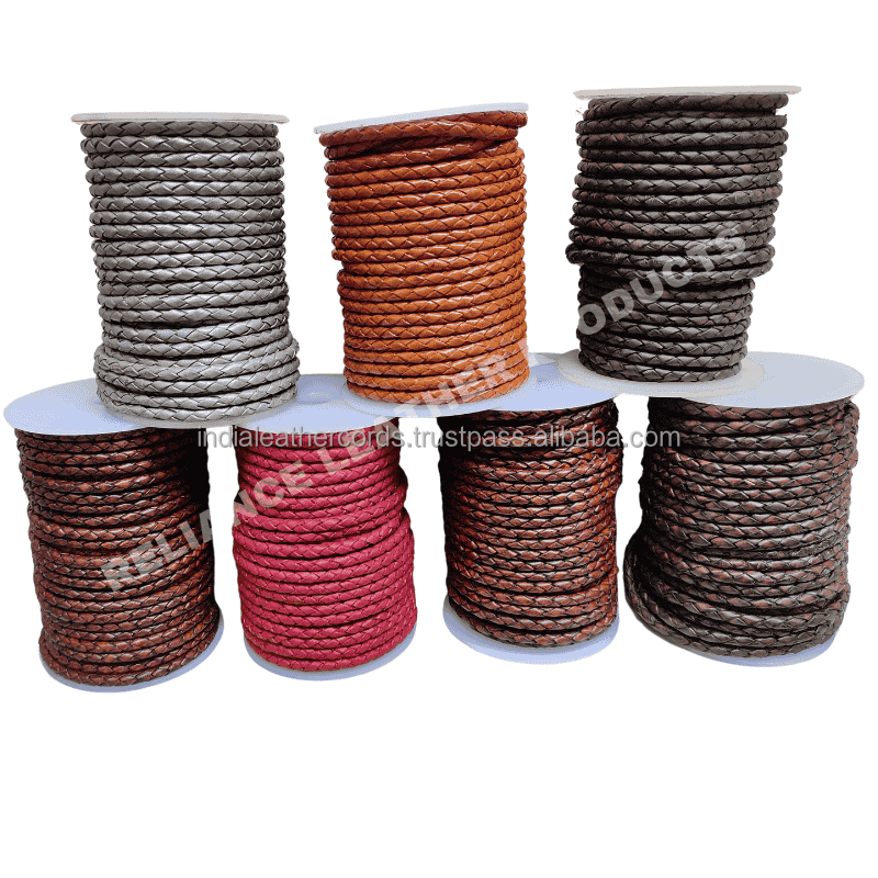 Custom Color Round Braided Bolo Leather Cord 100% Pure Leather for Jewelry Making DIY Accessories Custom OEM Supplier India
