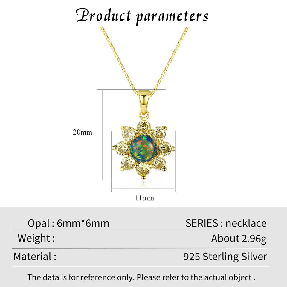 Hot Sale Rhodium Plated S925 Sterling Silver Trendy Women's Round Opal Pendant Necklace Exquisite Jewelry Factory Wholesale