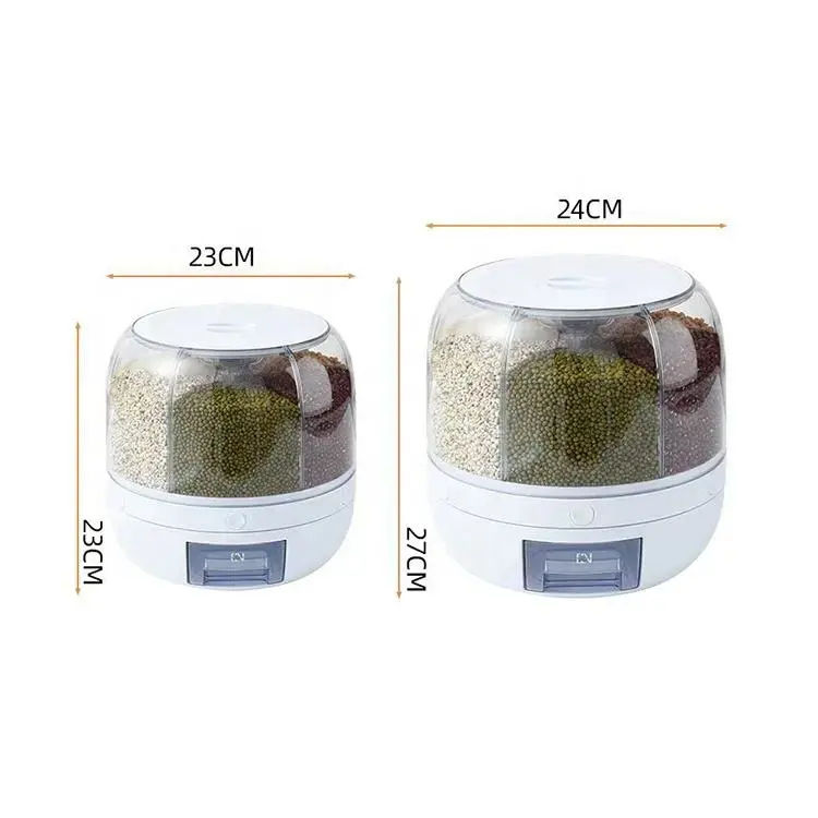 Hot Sale Rice Dispenser Kitchen Moisture-Proof 6-Grid Rotating Food Grain Dispenser Cereal Storage Box Container Dispenser