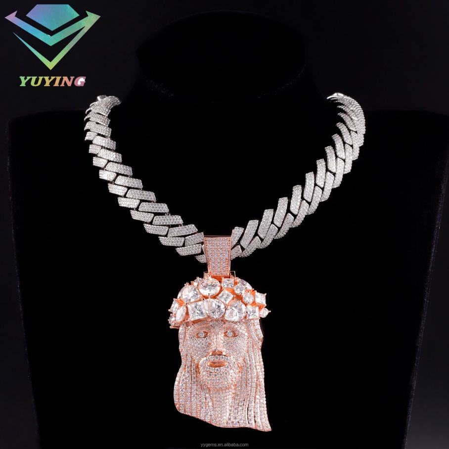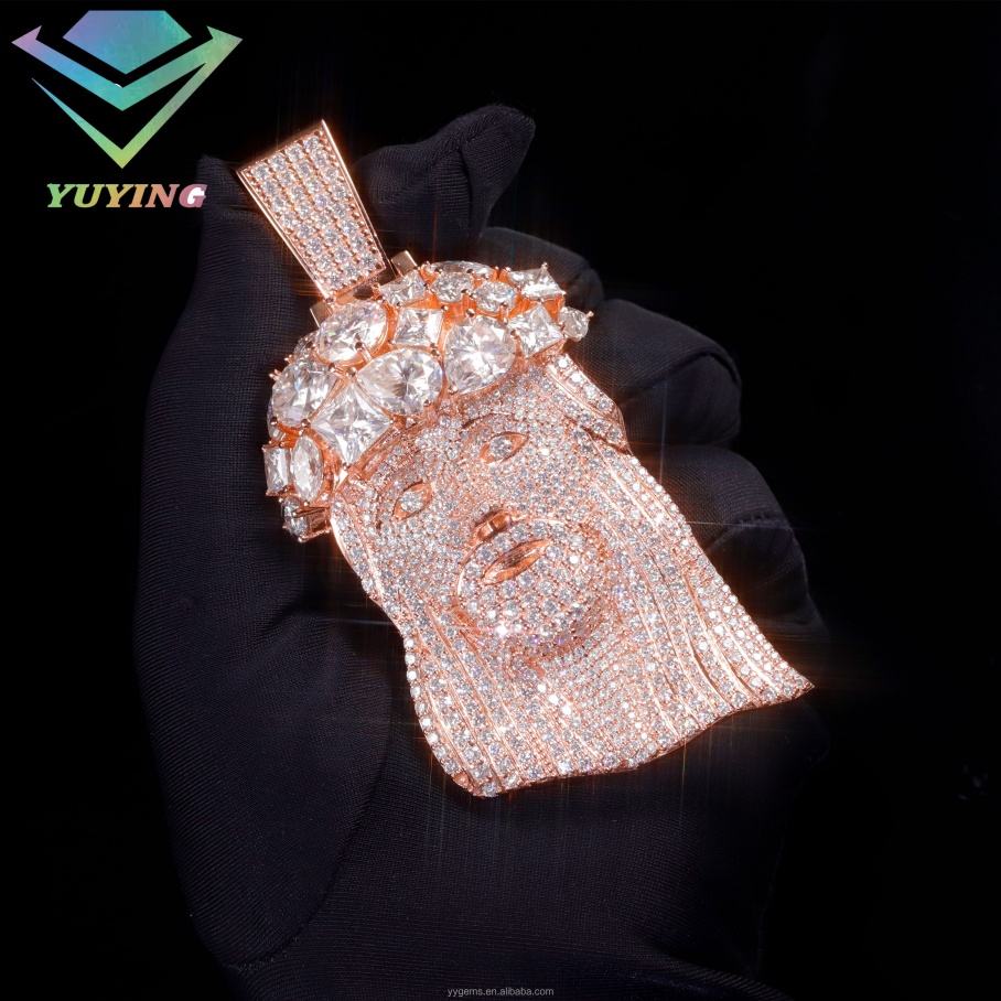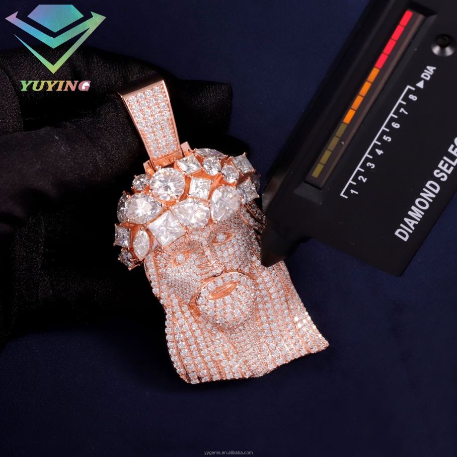 Hot Sale Rose Gold Plated Fancy Moissanite Iced Out Jesus Pendant 925 Sterling Silver Moissanite Custom Pendant for Necklace