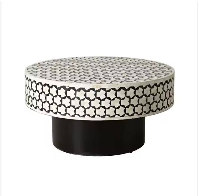 Hot Sale Round Floral Bone Inlay Coffee Table Brass Base Quality Handicrafts From India Marble Material Living Room or Bedroom
