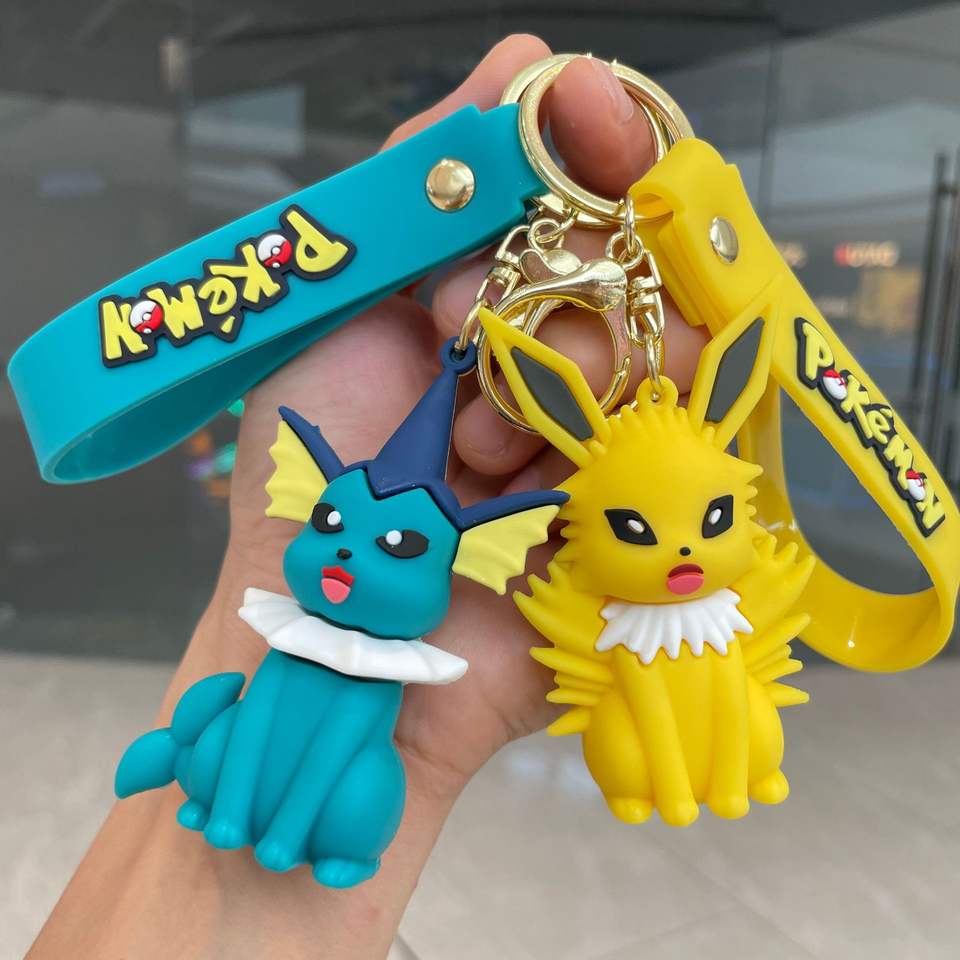 Hot Sale Rubber 3D Anime Pokem Oned PVC Cartoon Keychain Pendant Pikachued Gengar Charmander Eevee Silicone Pokem Key Chain