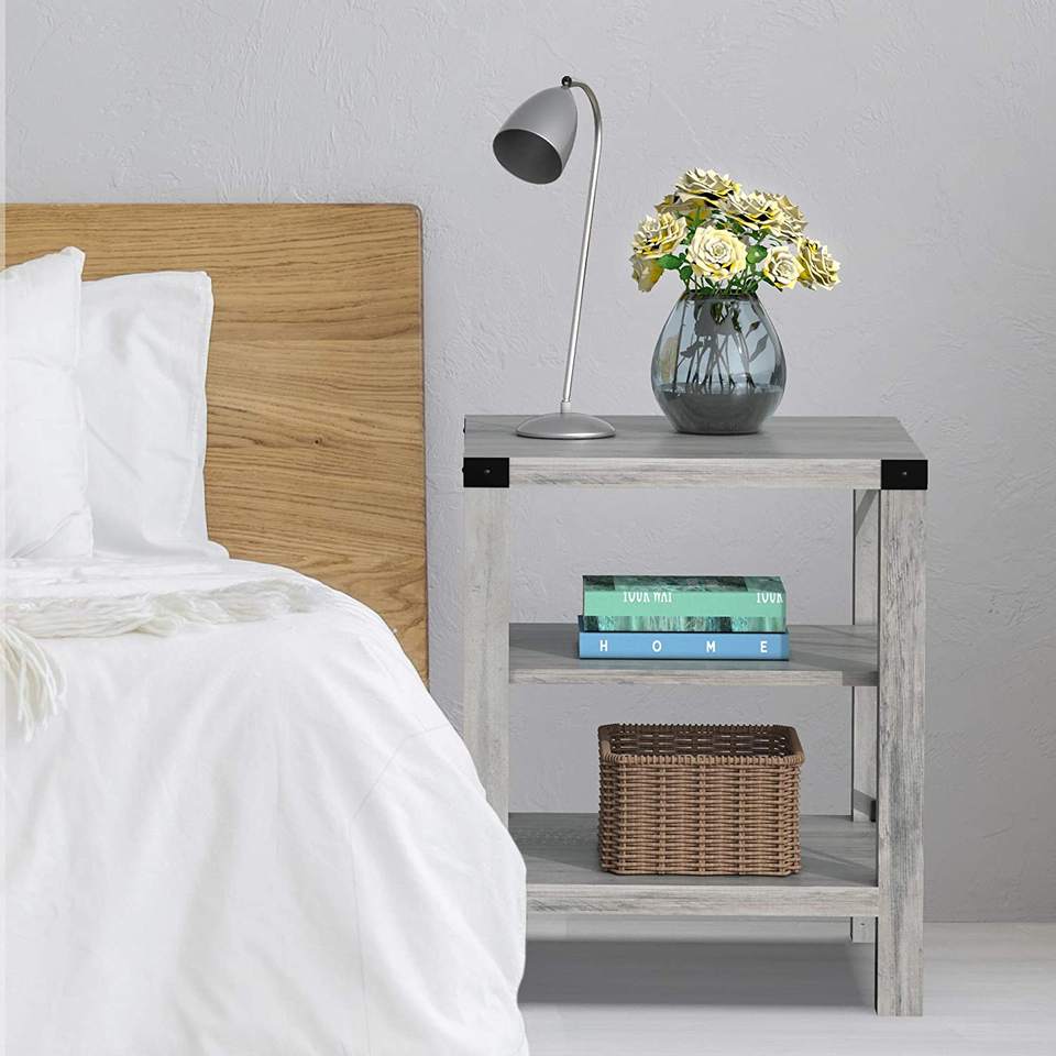 Hot Sale Rustic Coffee Table Farmhouse Accent Storage Shelf Wood Tea Table for Living Room TV Stand Side End Table With X Metal