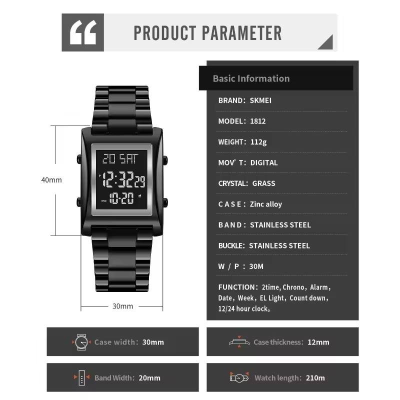 Alarm, Auto Date, chronograph, Day/Date, Water Resistant, waterproof, Led Display, Week Display, Luminous HandsFeature