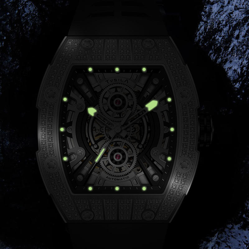 Hot Sale Silicone Strap Pointer Luminous Men's Automatic Mechanical Watches for Business