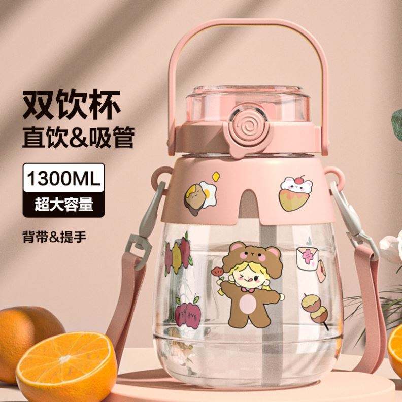 Hot Sale Sports Water Bottle 1300ML Outdoor Travel Kids Portable Double Drink Direct Drink Straw Bottle Plastic Water Bottle