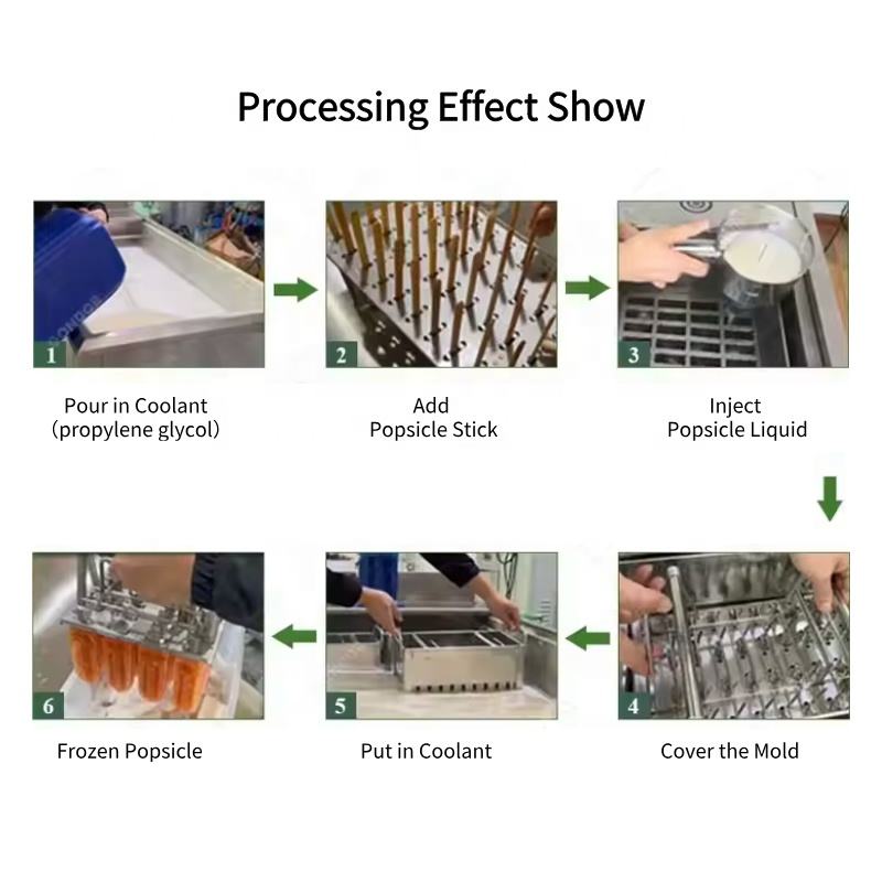 1 set of molds, 2 barrels of frozen liquid, 200 bags, 50 wooden sticks