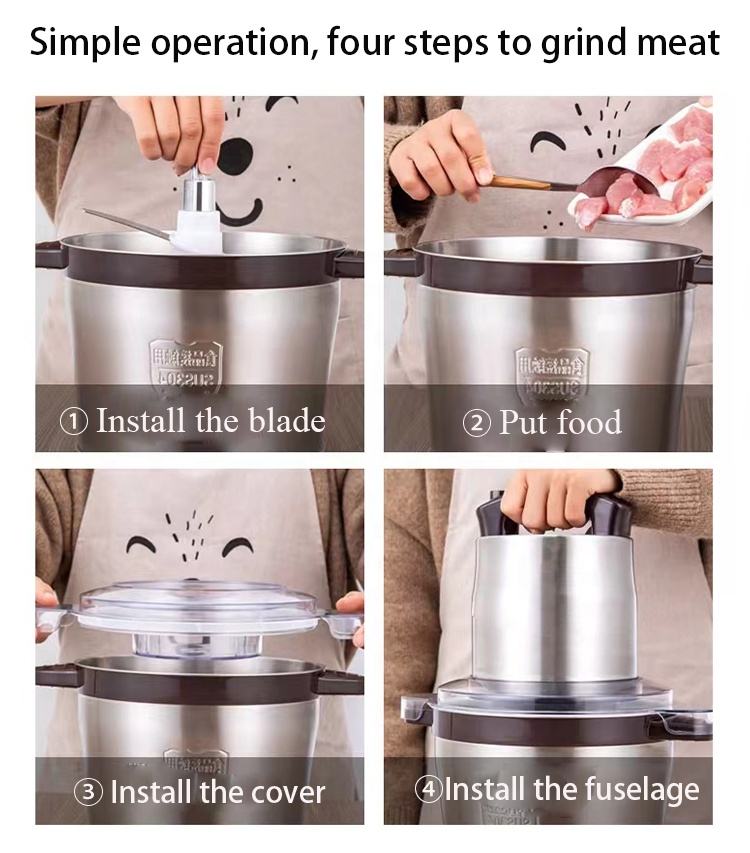 Hot Sale Stainless Steel Electric Yam Pounding Machine 6L/10L/12L Meat Grinder Chopper Factory Price Copper for Household Use