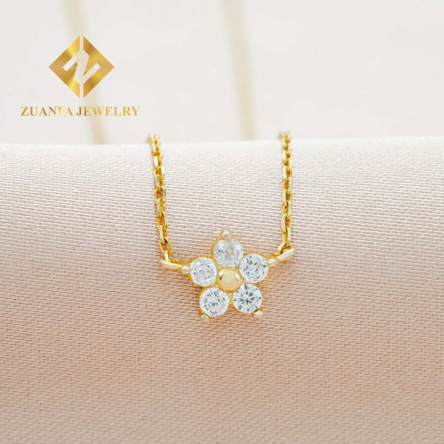 Hot Sale Sterling Silver 925 Necklace Flower Shape Design Cz Charms Women Jewelry for Daily