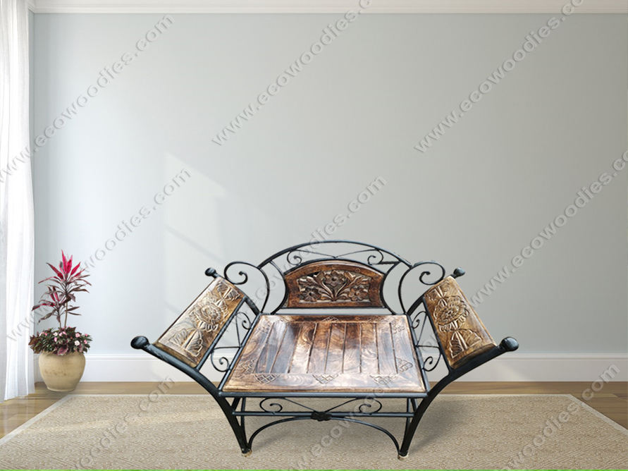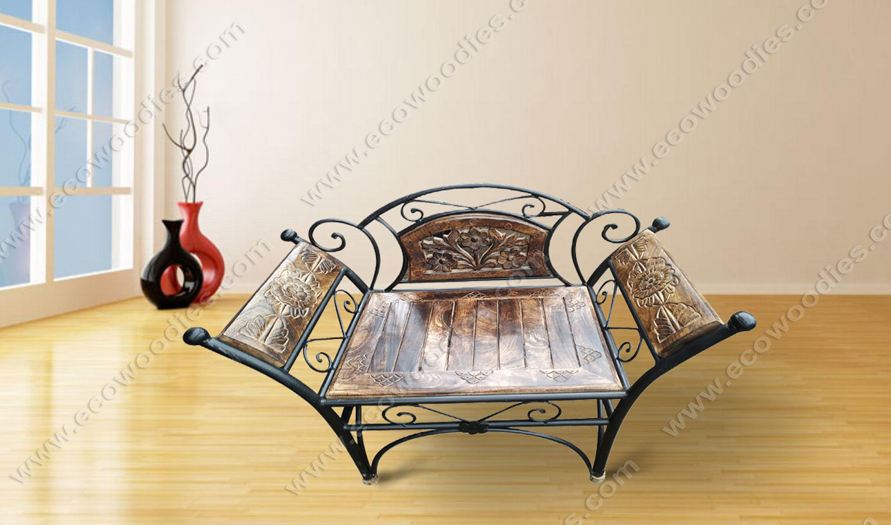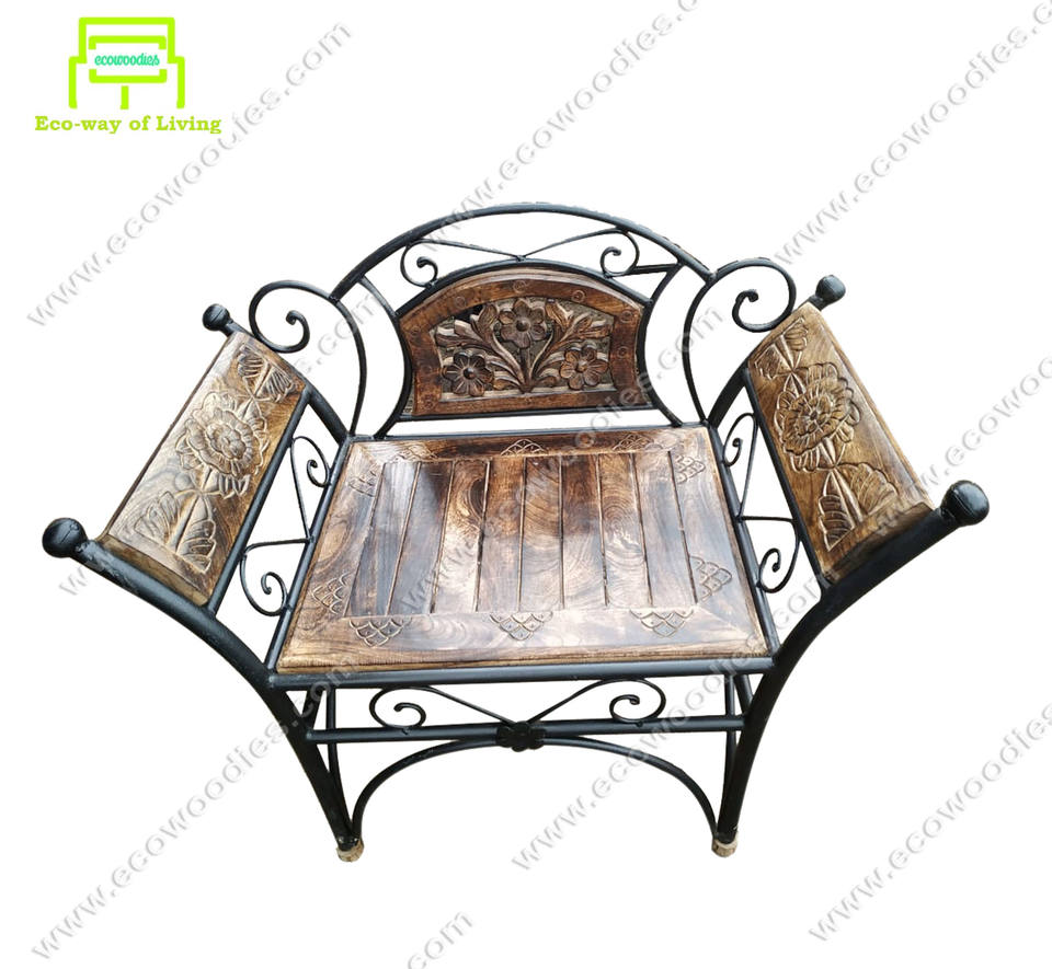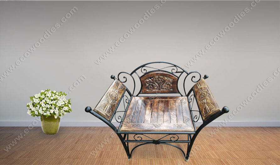 Product name:Handcrafted Iron sofa chair with carved wooden seat