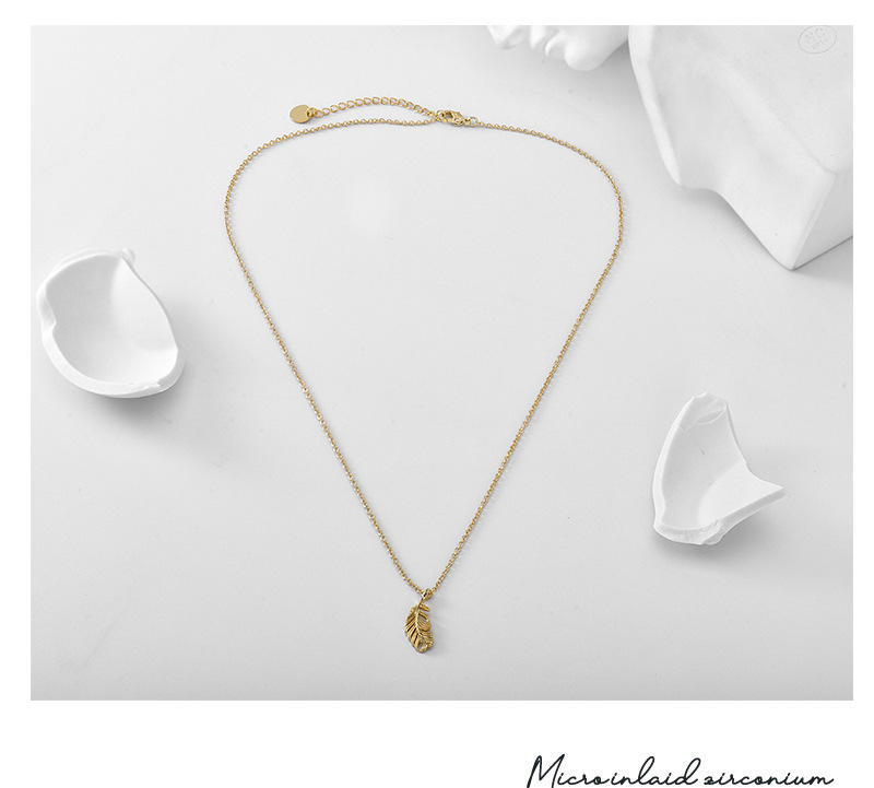 Stylish Diamond-Embellished Feather Brass Pendant Necklace Hot Sale Trendy Religious Style Link Chain Anniversary Religious Gift