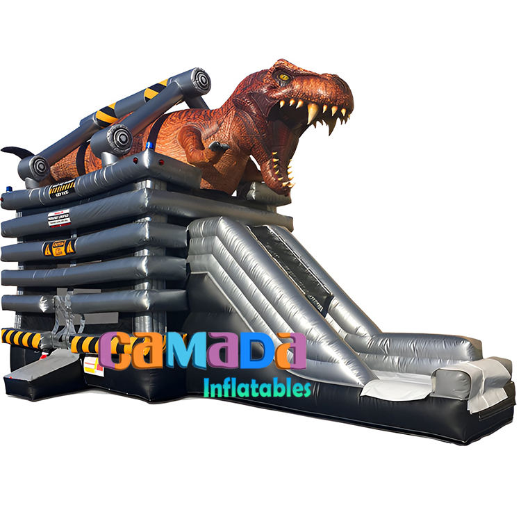 Hot Sale T-Rex Dinosaur Outdoor Inflatable Bouncer Slide Combo Big PVC Vinyl Moonwalk with Built-in Blower for Kids!