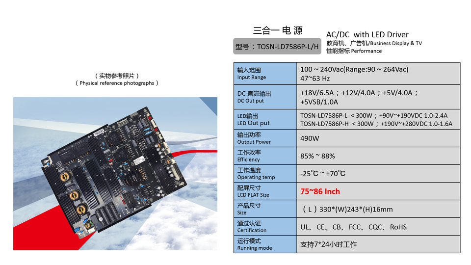 Hot Sale 200W 86% Efficiency TOSN-LD5065P LED Driver for 50~65 Inch LCD Screen 12V Splicing Monitor with 60Hz Frequency Output