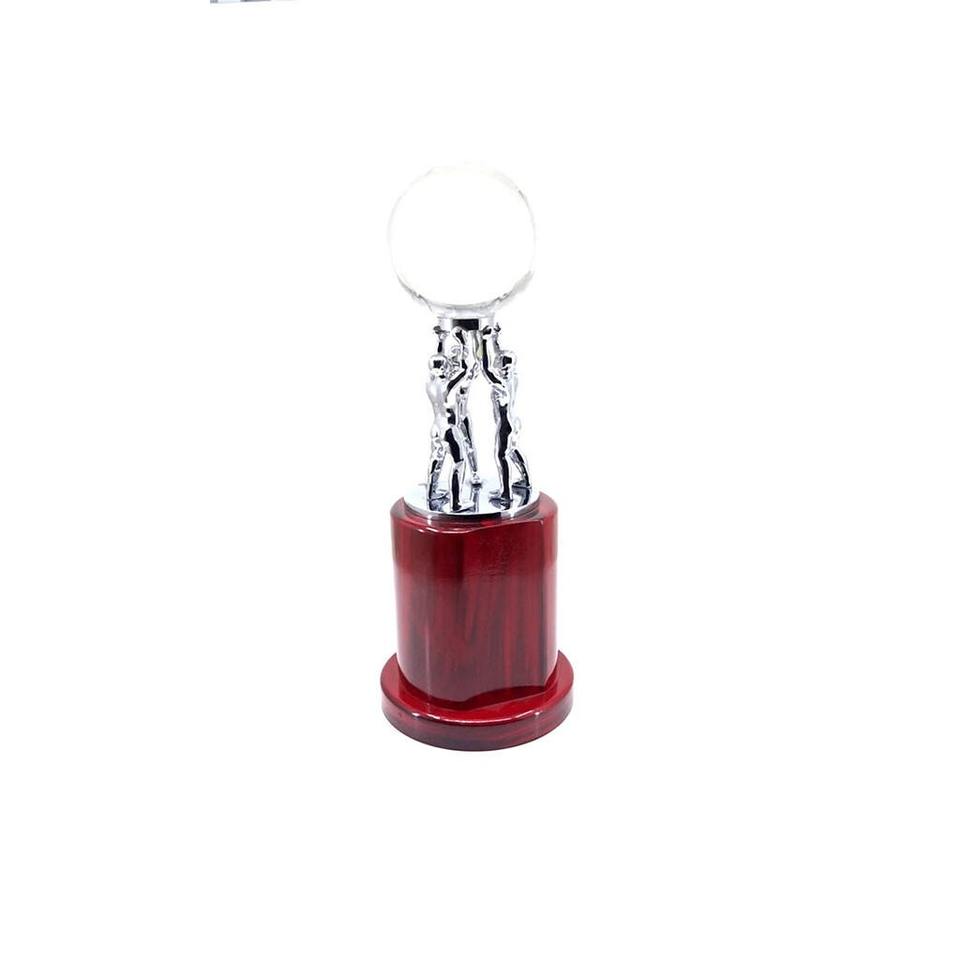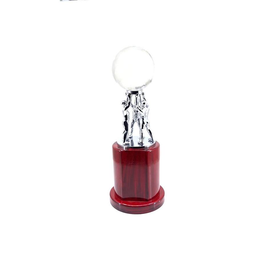 Product Name:Team Work Globe Silver Trophy, On A Wooden Base