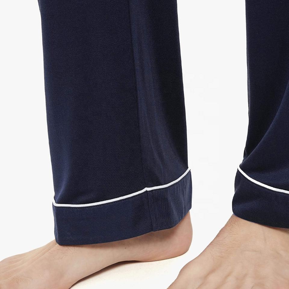 Hot Sale Top Quality Custom Men Casual Lapel Collar Silk Pajamas Set for Men Plain Quantity Cotton Blue OEM Technics Fabric