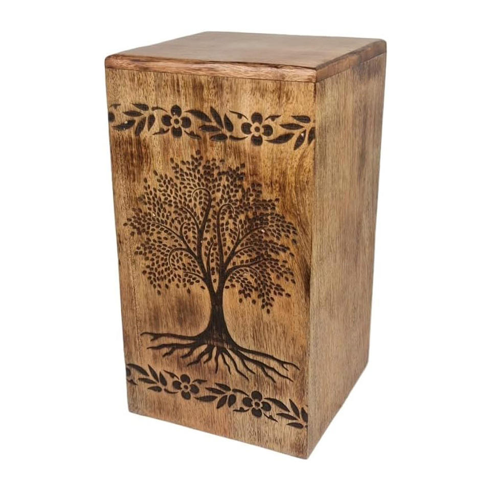 Hot Sale Tree of Life Engraved Wooden Cremation Urn for Human/Pet Ashes Large Mango Wood Rectangular Urn Box at Cheap Price