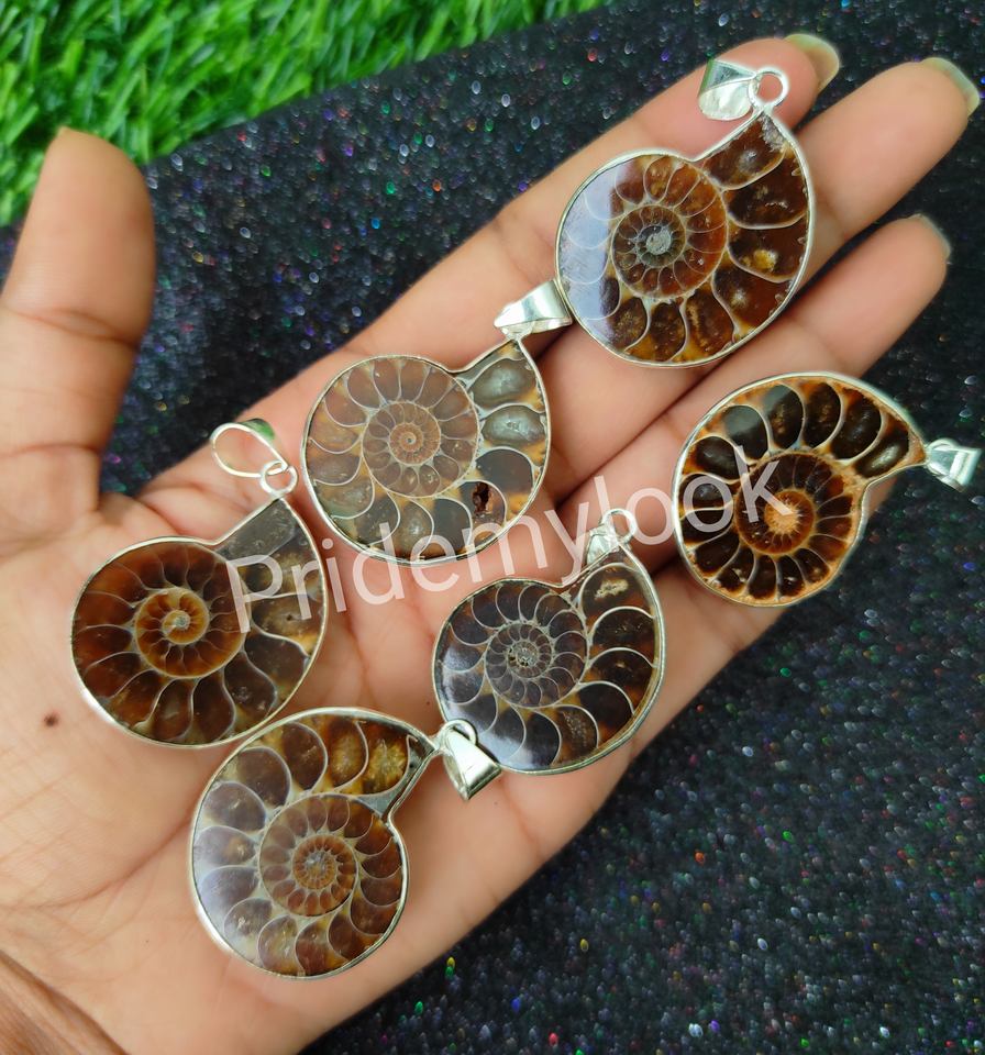 Hot Sale Trendy Women's 925 Silver Plated Pendants Handmade Natural Ammonite Gemstone Necklaces Bulk Wholesale Charms Children