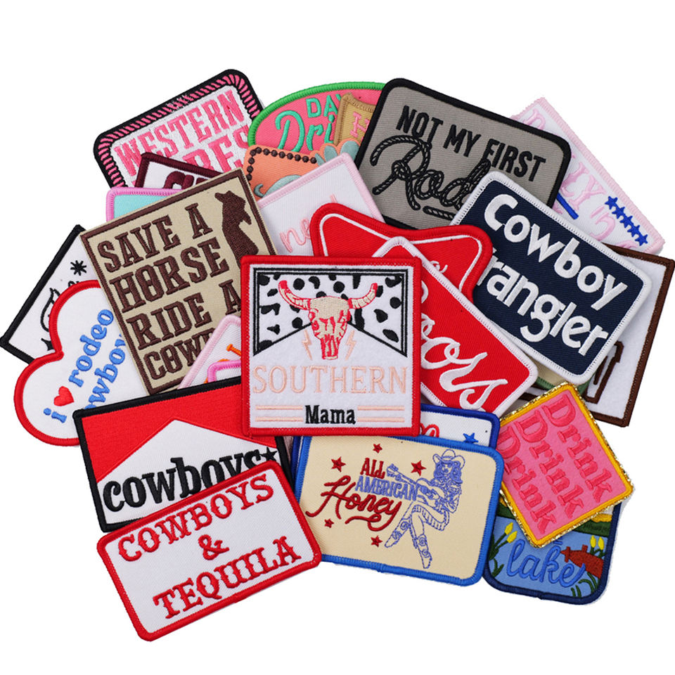 Hot Sale Twill Chenille Embroidered Hat Patches Western Iron-On Dolly Logo Design Badges Patch Clothing