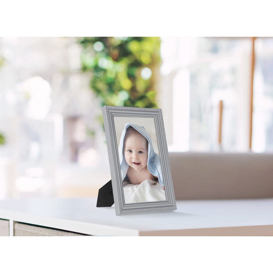 Hot Sale Unbreakable PS 4X6 Gray Photo Picture Frame for Family Decoration with Durable Plastic Wood and Silver Materials