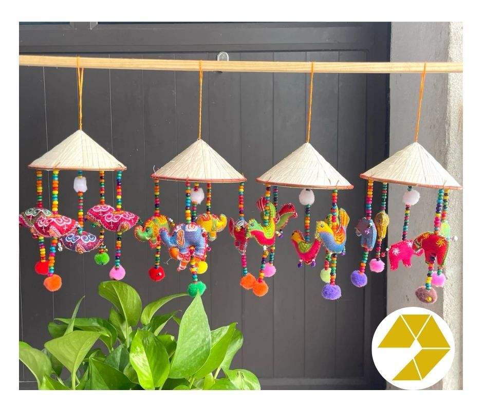 Hot Sale Vietnamese Non La Wind Chimes with Stuffed Elephants & Beaded Strings for Boho Decor Non La Wind Chimes Ready to Ship