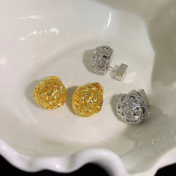 Hot Sale Vintage Jewelry Style Brass Luxury Copper Wire Ball Plated 18k Real Gold Fashion Women Stud Earrings