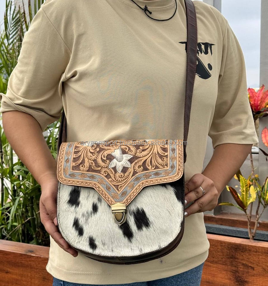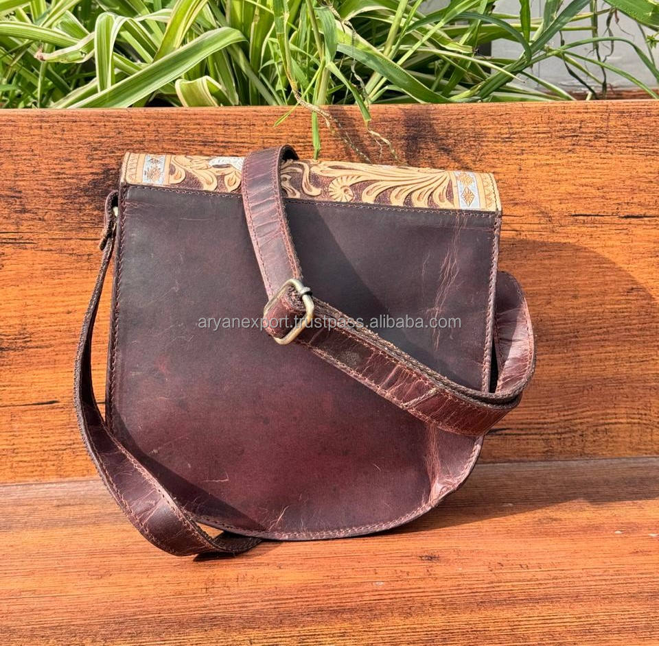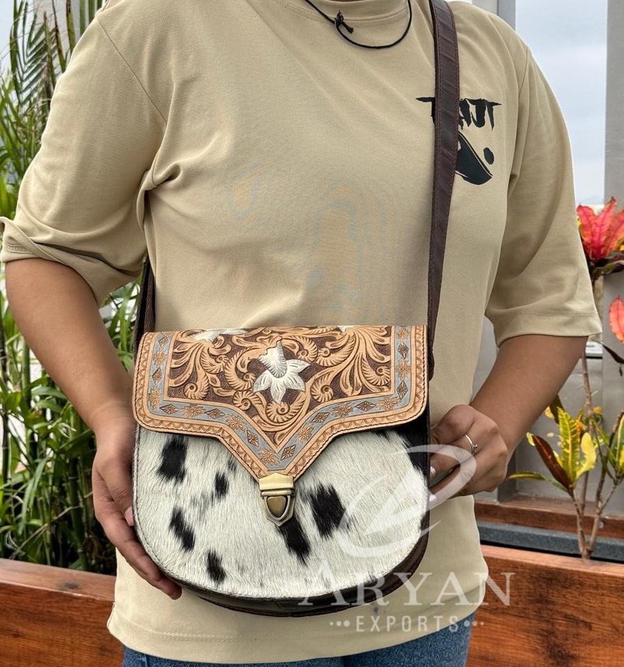 Hot Sale Western Handmade Tooled Cowhide Leather Crossbody Purse Genuine Leather Women High Quality Designer Unique Handbags