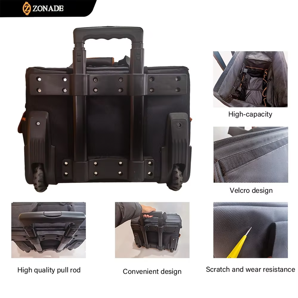 Hot Sale Wheeled Tool Bag Zipper Custom Rolling Trolley Large Capacity Oxford Cloth Electricians Tool Box Bag