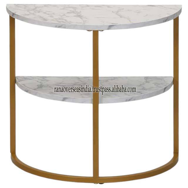 Product name:White Top Marble And Gold Metal Frame Half Moon Shape Side Table