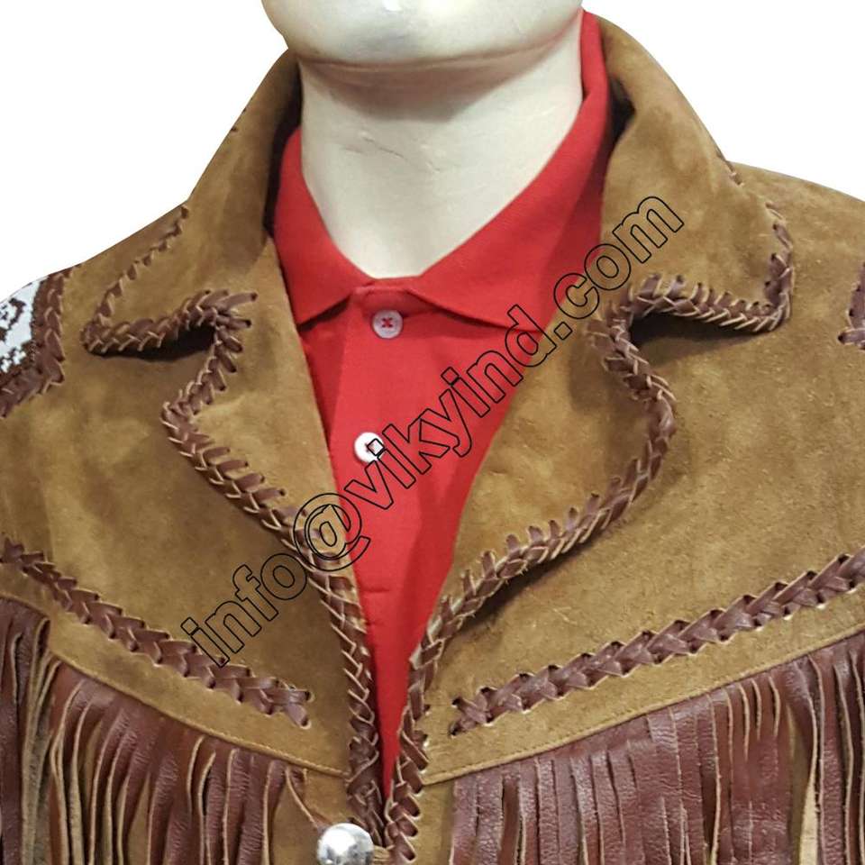 Product name:Men Brown Suede Western Cowboy Style Leather Jacket