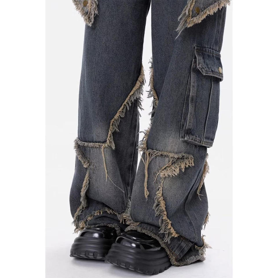 Hot Sale Women Custom Street Wear Wide Leg Ripped Patchwork Jeans Pants For Women High Waist Jeans