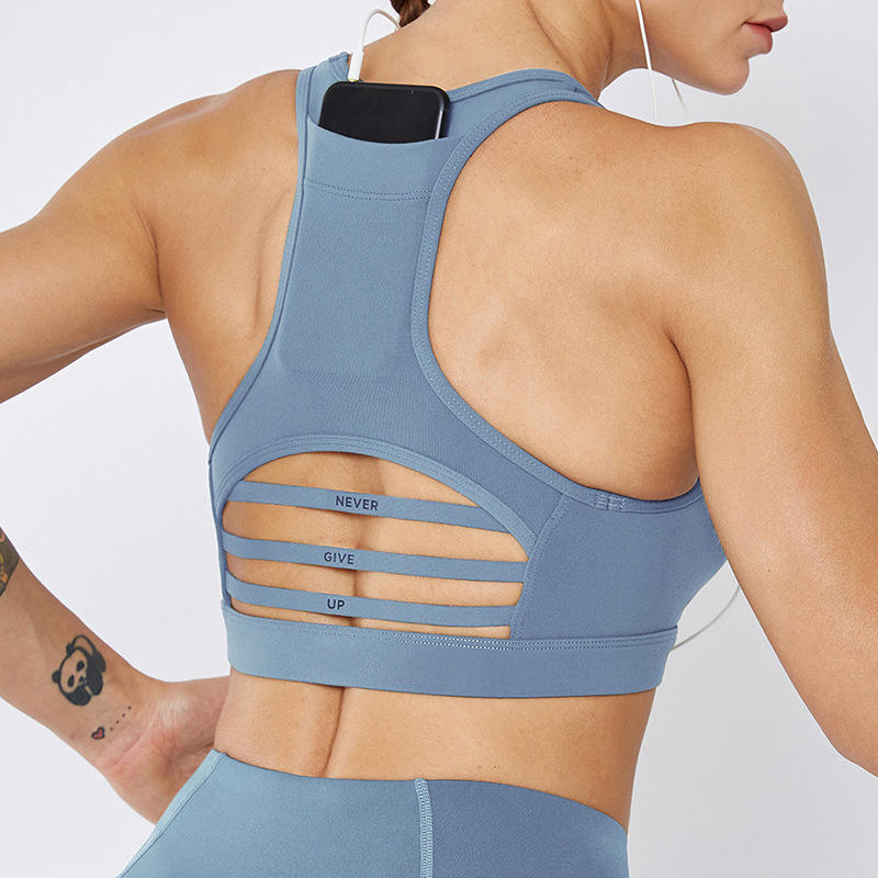 Hot Sale Women's Sexy Mesh Splicing Yoga Sports Bra 2XL Plus Size Comfortable Soft and Breathable with Back Pocket