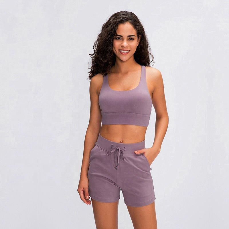 Hot Sale Women's Four-Way Stretch Compression Sports Bra Breathable High Solid Color Sleeveless Fitness Bra