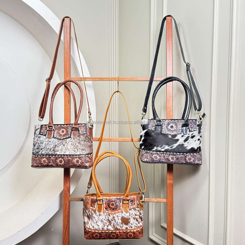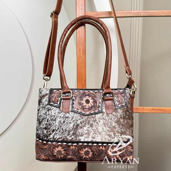 Product Name:Hand Tooled Cowhide Leather Crossbody Tote Bag