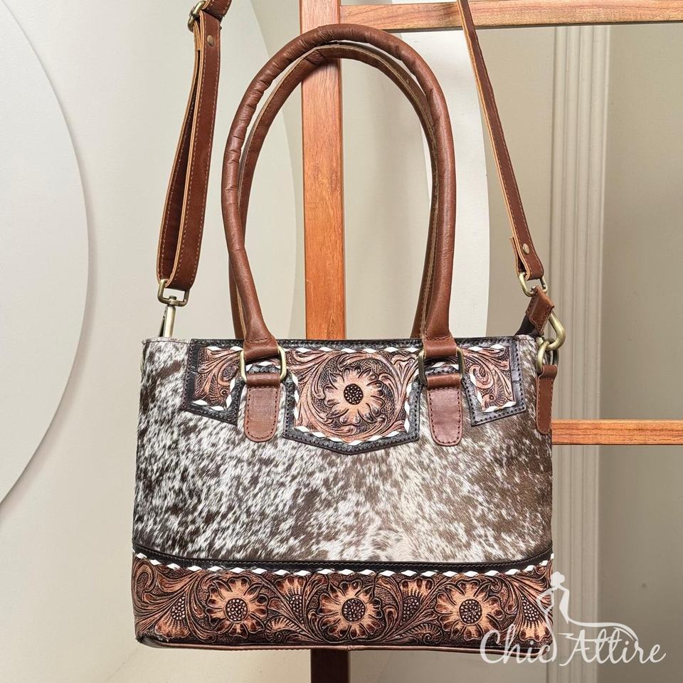 Product name:Hand Tooled Cowhide Leather Crossbody Tote Bag